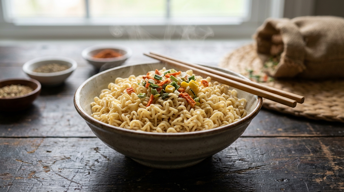 Wiesz co, często sięgamy po chińską zupkę, bo to szybkie i proste, prawda? Ale jak zajrzysz w skład, zobaczysz, że pod względem odżywczym to żadne cudo. Makaron to zazwyczaj oczyszczona mąka pszenna. Daje sporo kalorii, ale niestety ma mało błonnika, witamin czy minerałów – tych, które są super ważne dla zdrowia. To tak, jakby jeść po prostu pusty makaron.